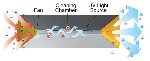 La luz ultravioleta reacciona naturalmente con el aire, produciendo plasma purificador que destruye bacterias, virus, hongos, levaduras, moho, algas y otro microorganismo dañino.