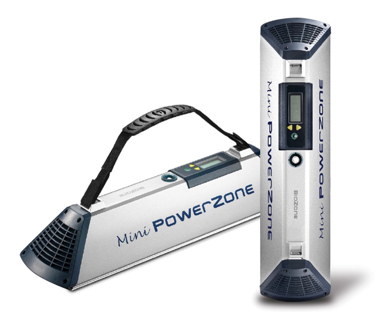 El Mini-PowerZone, un purificador de aire y superficie altamente portátil, viene con una correa de transporte e incluye un temporizador incorporado, por lo que puede programarse para desinfectar de forma continua o en incrementos de diez minutos.